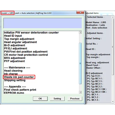 برای رفع این مشکل، شما می‌توانید از نرم‌افزار Epson Adjustment Program استفاده کنید. این نرم‌افزار به شما امکان می‌دهد شمارنده جوهر زائد را ریست کرده و دستگاه را به حالت اولیه بازگردانید.